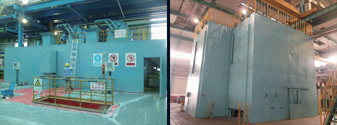 This soundproof enclosure is designed for shot blasting machines. Due to the substantial size of the equipment it houses, it features a spacious interior while providing an aesthetically pleasing appearance, effective noise reduction, and dust containment.