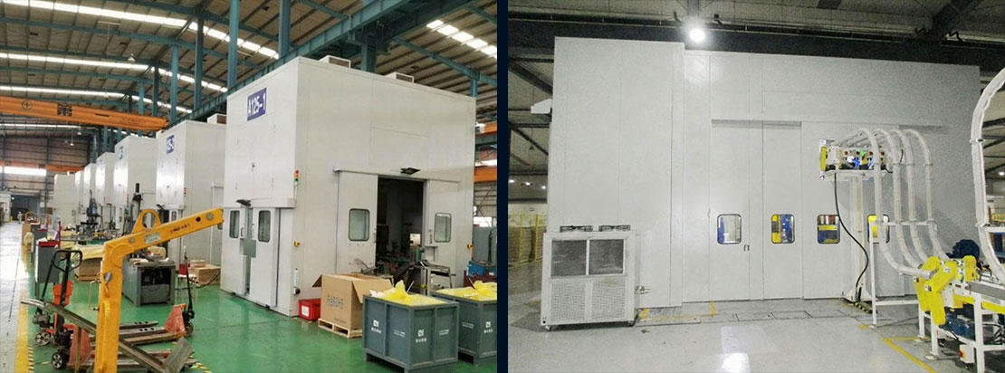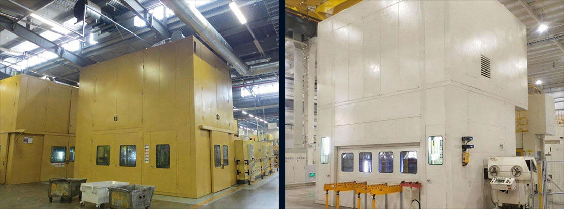 This soundproof room is designed for high-speed punching machines with an L-shaped sliding door structure, suitable for 125T-350T punching machines.